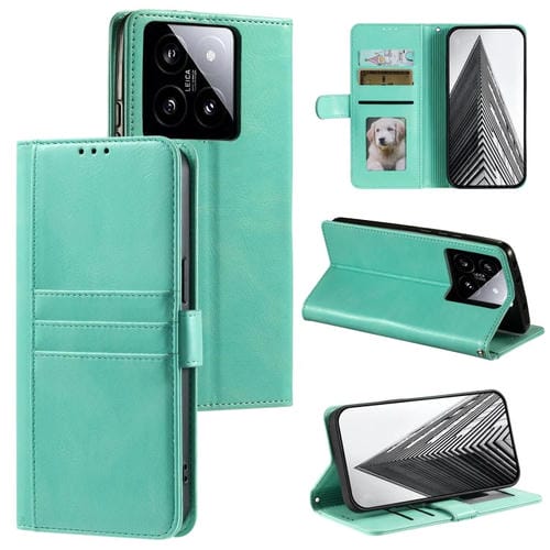 Para Xiaomi 14 Funda De Cuero Para Teléfono Con Billetera Simple Para 6 Tarjetas (Verde)