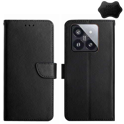 Para Xiaomi 14 Funda De Teléfono Con Tapa A Prueba De Huellas Dactilares De Cuero Genuino (Negro)