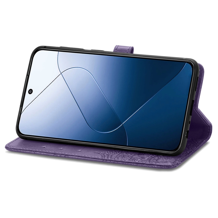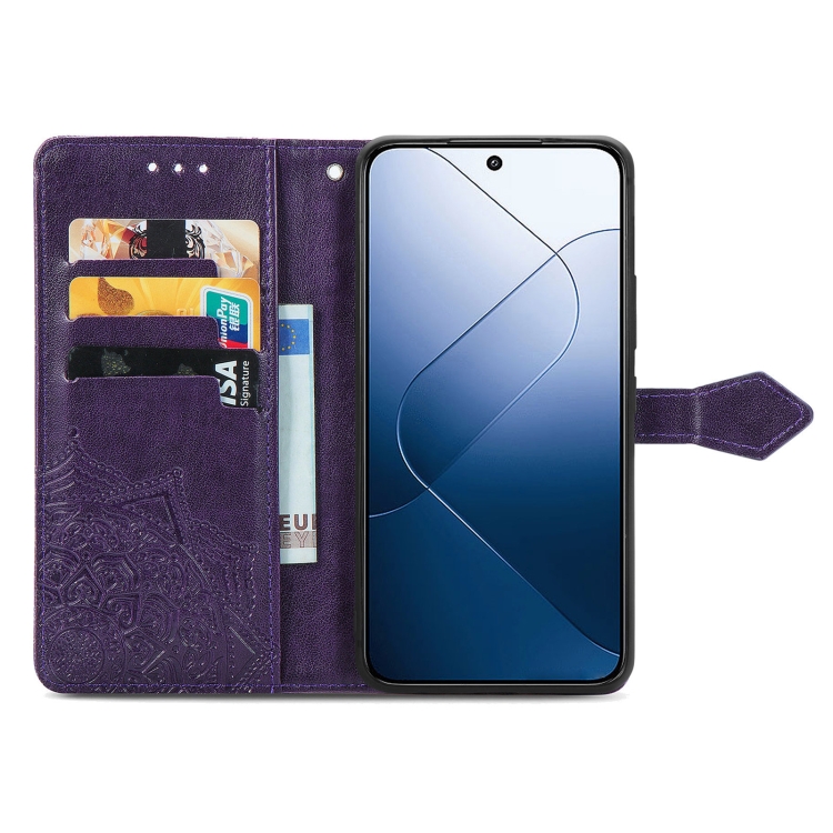 Para Xiaomi 14 Funda De Teléfono De Cuero Con Relieve De Flor De Mandala (Púrpura)
