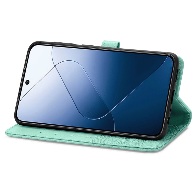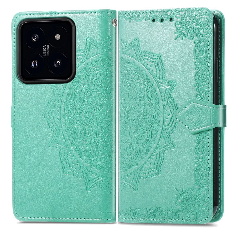 Para Xiaomi 14 Funda De Teléfono De Cuero Con Relieve De Flor Mandala (Verde)