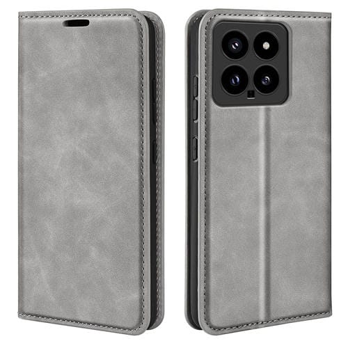 Para Xiaomi 14 Funda De Teléfono De Cuero Con Succión Magnética De Piel Retro (Gris)
