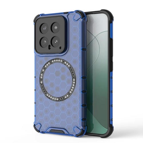Pour Xiaomi 14 Étui de téléphone antichoc avec anneau magnétique en nid d'abeille (bleu)