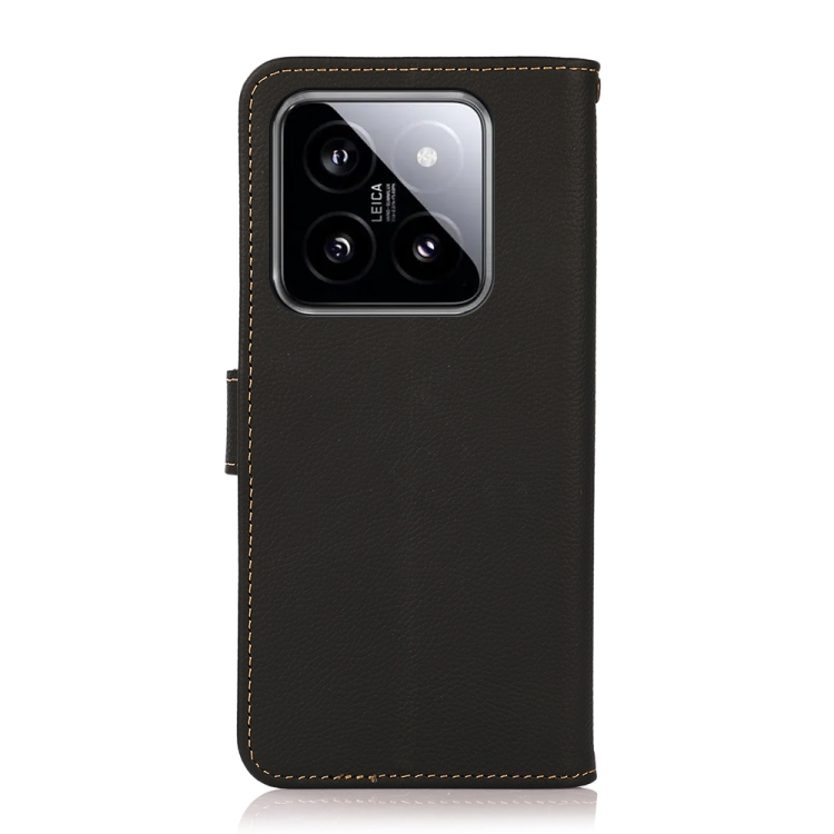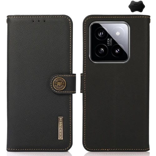 Para Xiaomi 14 Khazneh Custer Texture Rfid Funda De Cuero Genuino Para Teléfono (Negro)