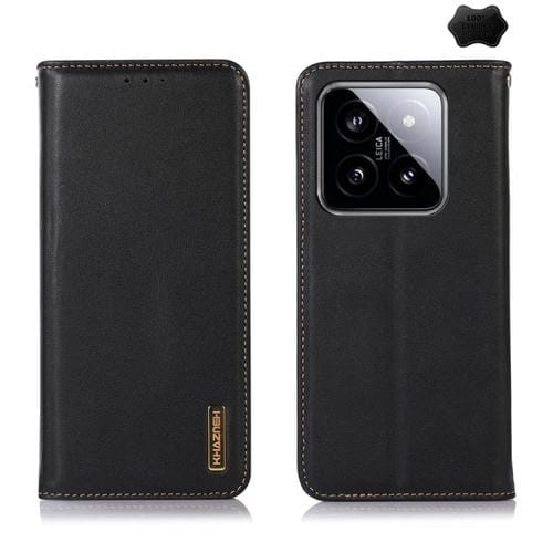 Para Xiaomi 14 Khazneh Nappa Funda Para Teléfono De Cuero De Vaca De Capa Superior (Negro)
