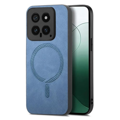 Para Xiaomi 14 Pro 5G Color Sólido Retro Magsafe Pu Funda Para Teléfono Con Contraportada (Azul)