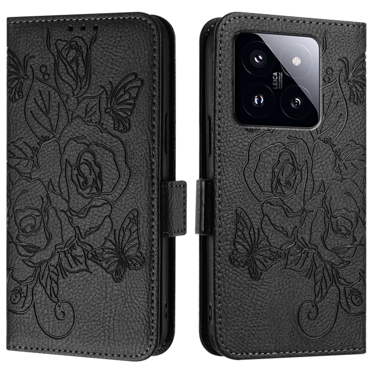 Para Xiaomi 14 Pro 5G Funda De Teléfono De Cuero Antirrobo Rfid Con Relieve Rosa (Negro)