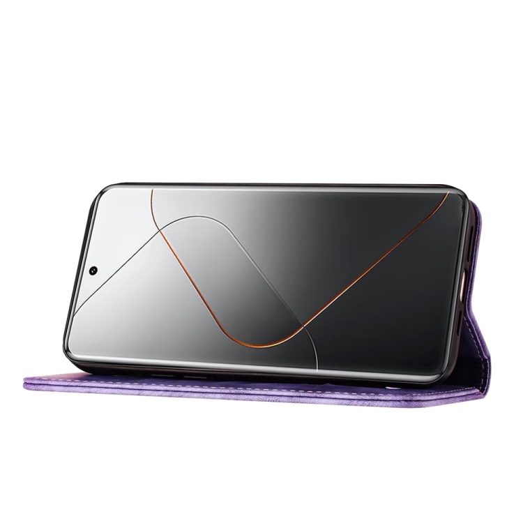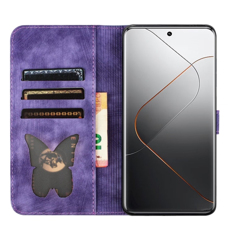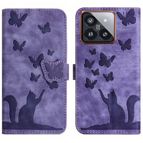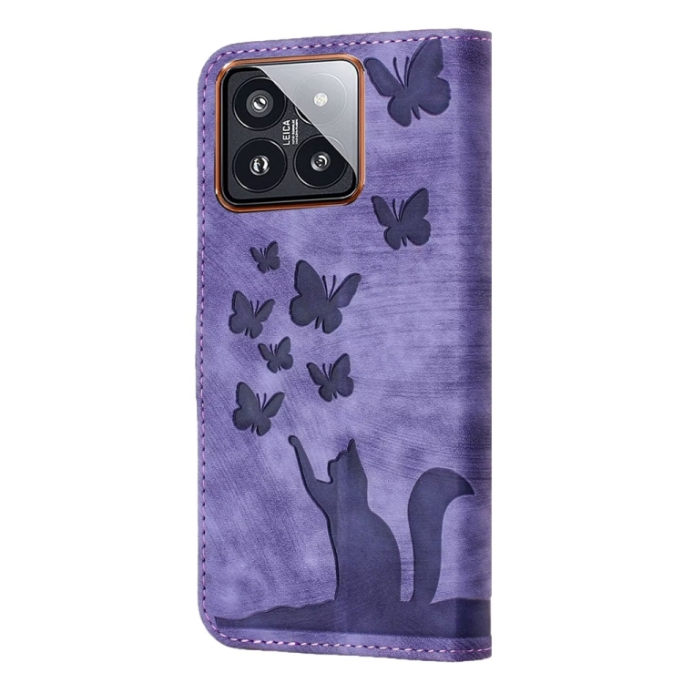 Para Xiaomi 14 Pro Butterfly Cat Embossing Flip Funda De Cuero Para Teléfono (Púrpura)