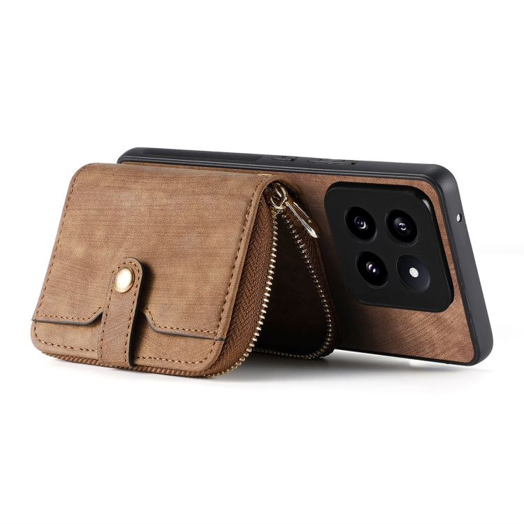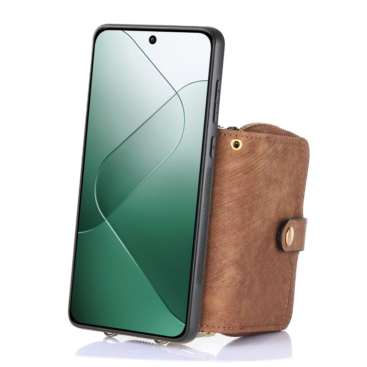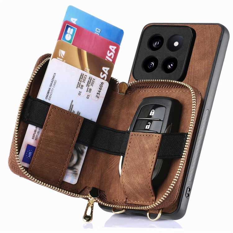 Para Xiaomi 14 Pro Crossbody Funda Para Teléfono Con Billetera Con Cremallera Multifunción (Marrón)