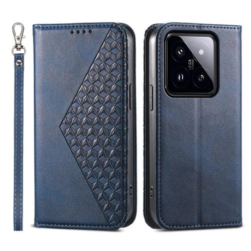 Para Xiaomi 14 Pro Cubic Grid Calf Texture Funda De Cuero Magnética Para Teléfono (Azul)