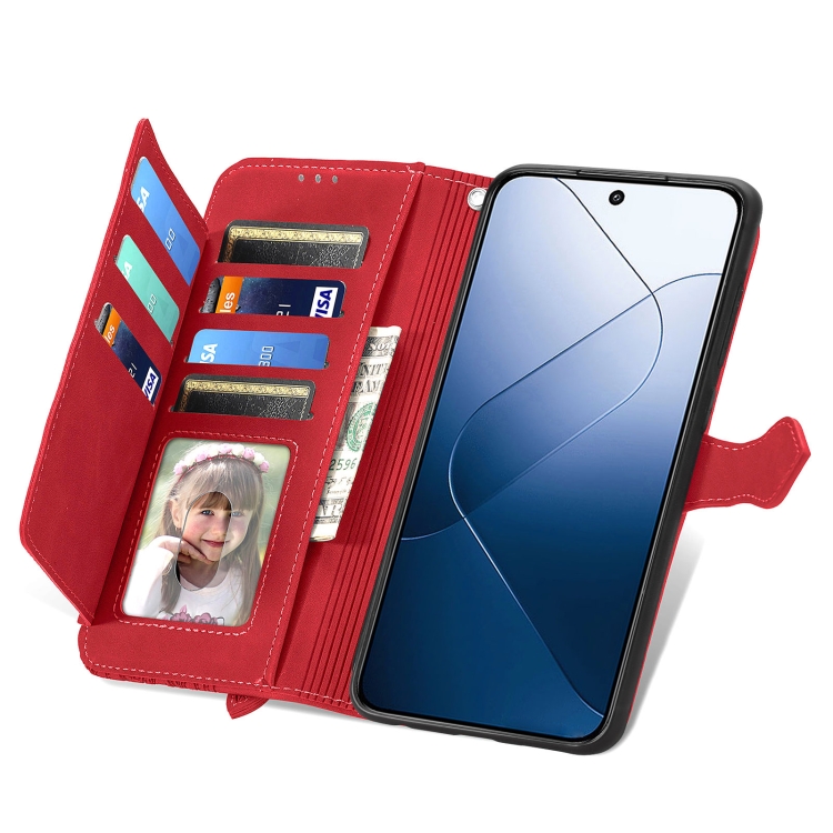 Para Xiaomi 14 Pro Funda De Cuero Con Cremallera Y Flores En Relieve (Rojo)
