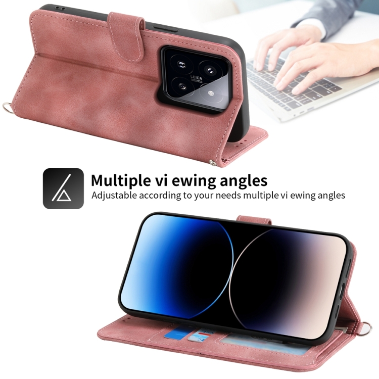 Para Xiaomi 14 Pro Funda De Cuero Para Teléfono Con Billetera En Relieve Y Flores Con Sensación De Piel (Rosa)
