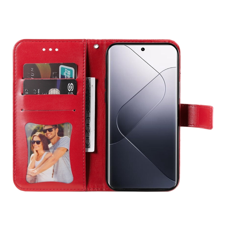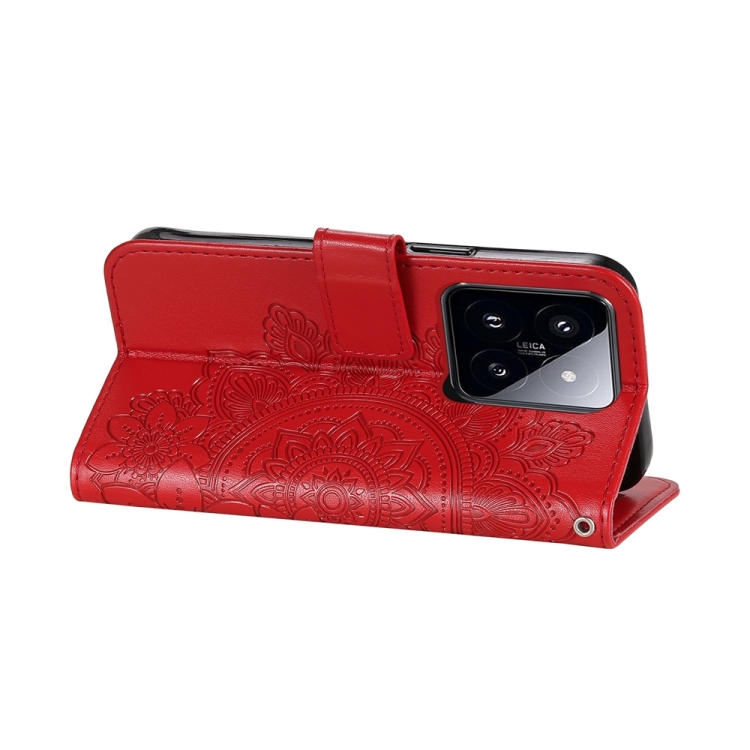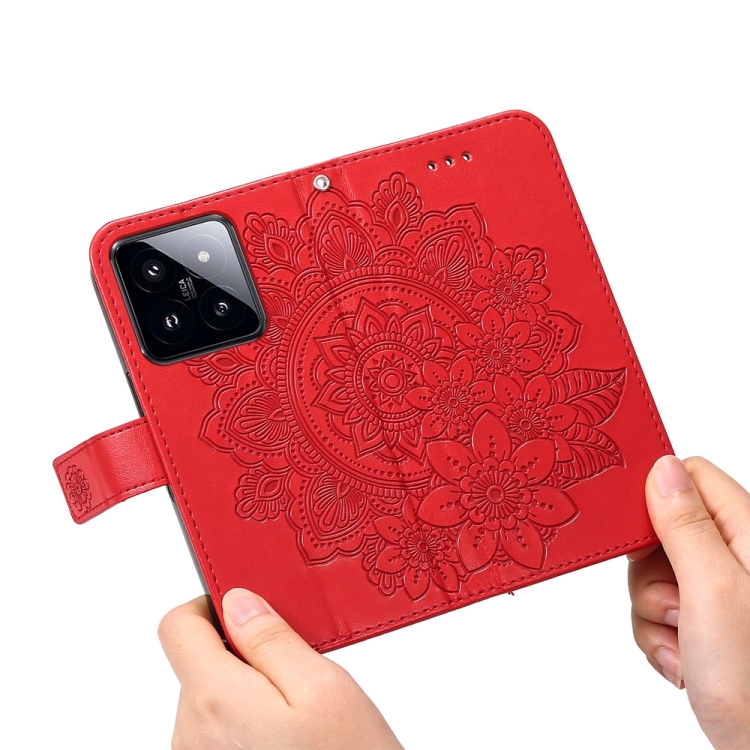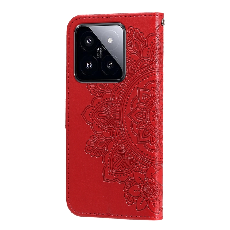 Para Xiaomi 14 Pro Funda De Teléfono De Cuero Con Estampado De Flores De 7 Pétalos (Rojo)
