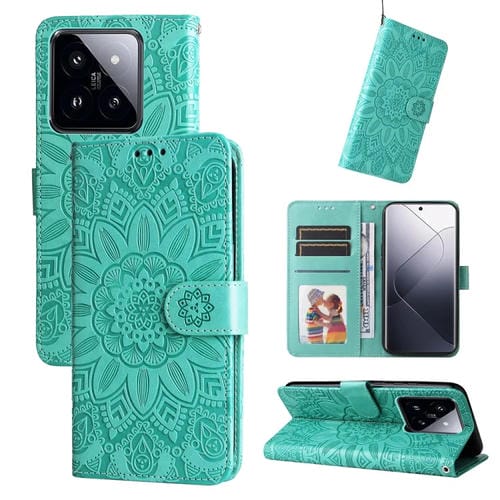Para Xiaomi 14 Pro Funda De Teléfono De Cuero Con Girasol En Relieve (Verde)