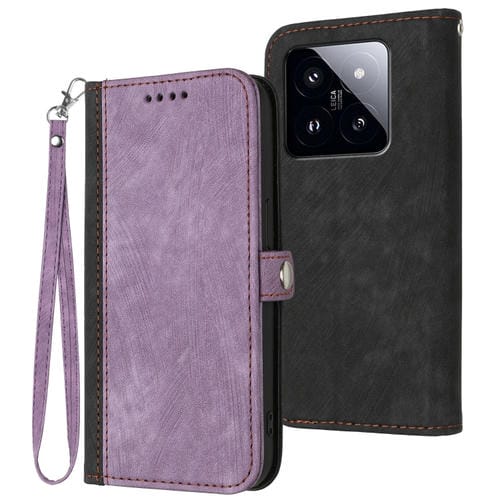 Para Xiaomi 14 Pro Hebilla Lateral Doble Pliegue Correa De Mano Funda De Cuero Para Teléfono (Púrpura)