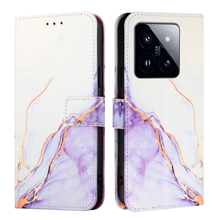 Para Xiaomi 14 Pro Pt003 Funda De Teléfono De Cuero Con Tapa Con Patrón De Mármol (Blanco Púrpura)