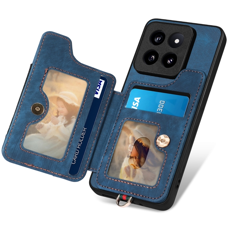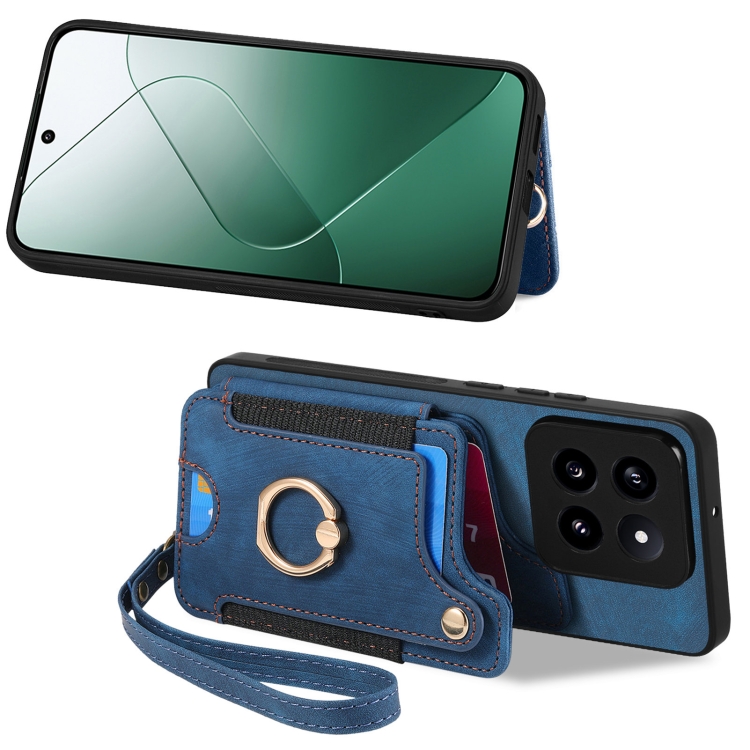 Para Xiaomi 14 Pro Retro Skin-Feel Ring Funda Para Teléfono Con Billetera Rfid Con Múltiples Tarjetas (Azul)