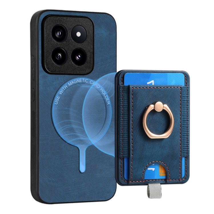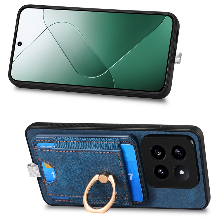 Para Xiaomi 14 Pro Retro Splitable Magnetic Card Bag Funda De Cuero Para Teléfono (Azul)