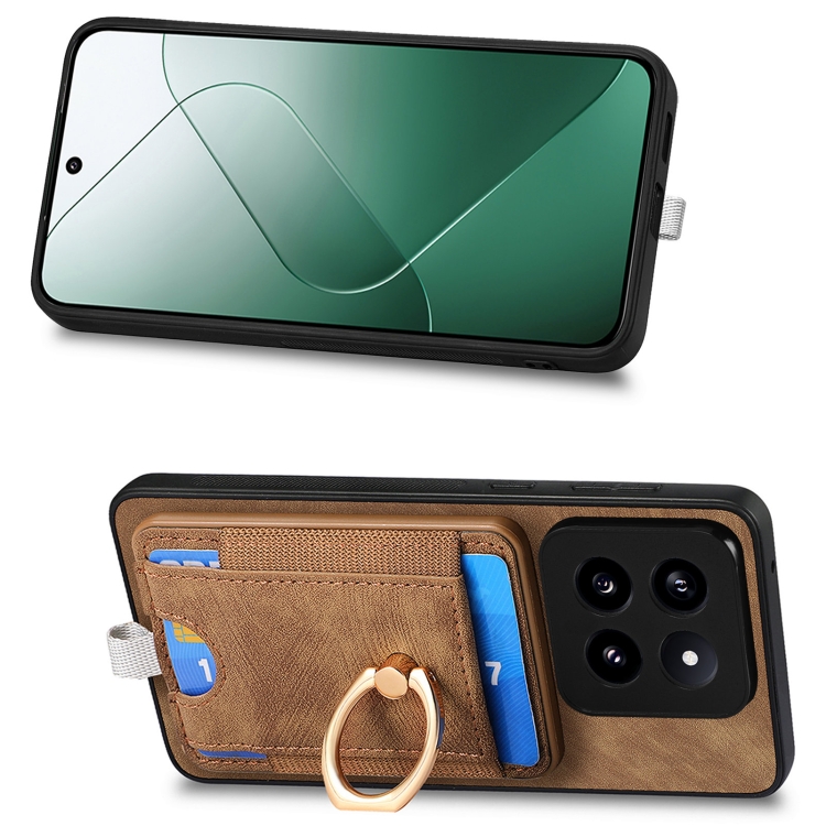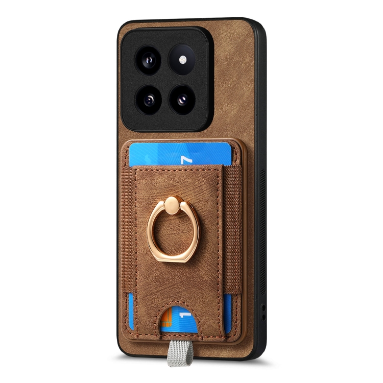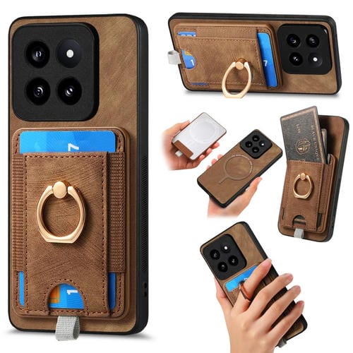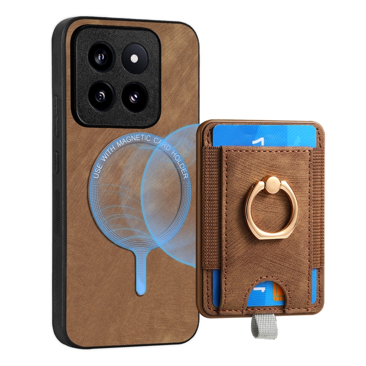 Para Xiaomi 14 Pro Retro Splitable Magnetic Card Bag Funda De Cuero Para Teléfono (Marrón)