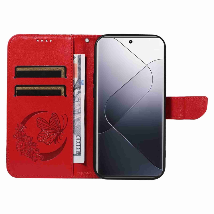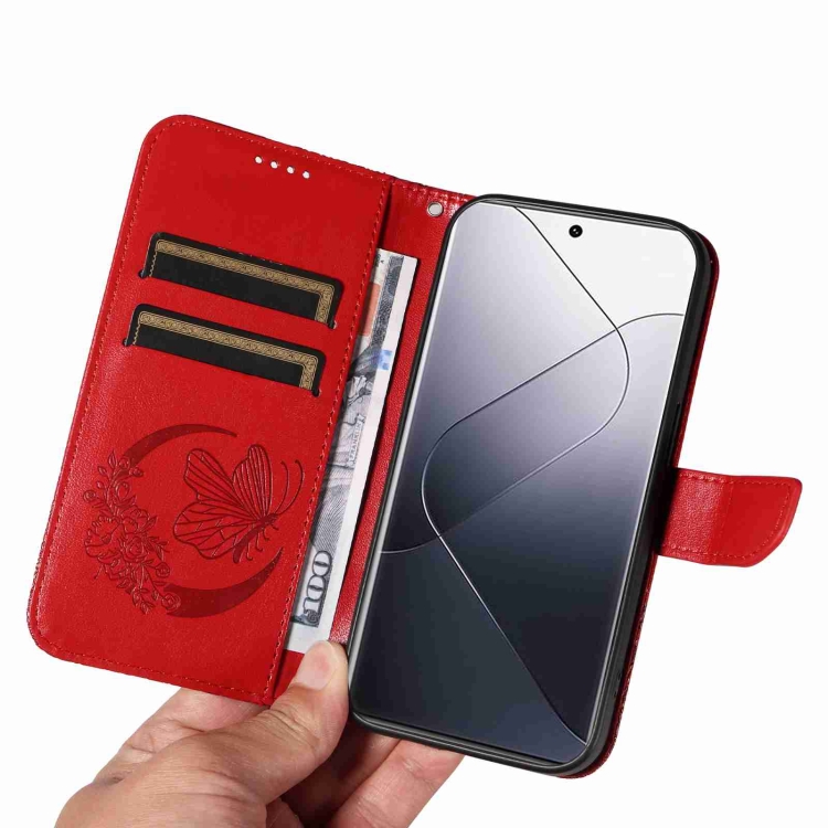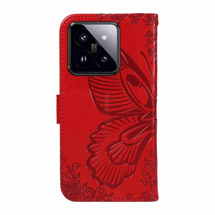 Para Xiaomi 14 Pro Swallowtail Butterfly Funda De Cuero Para Teléfono En Relieve (Rojo)