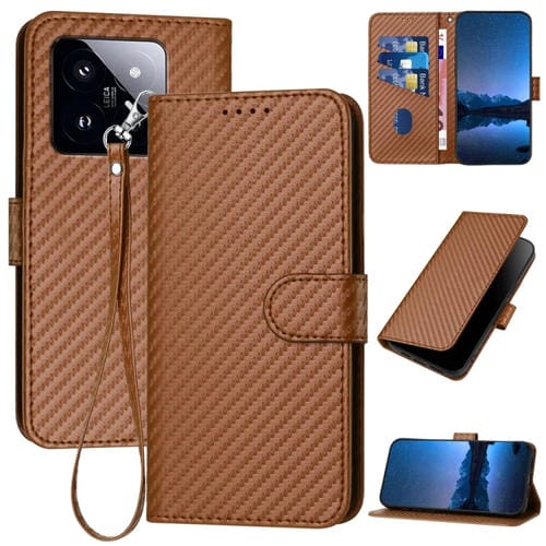 Para Xiaomi 14 Pro Yx0070 Funda De Cuero Con Hebilla De Fibra De Carbono Y Cordón (Café)
