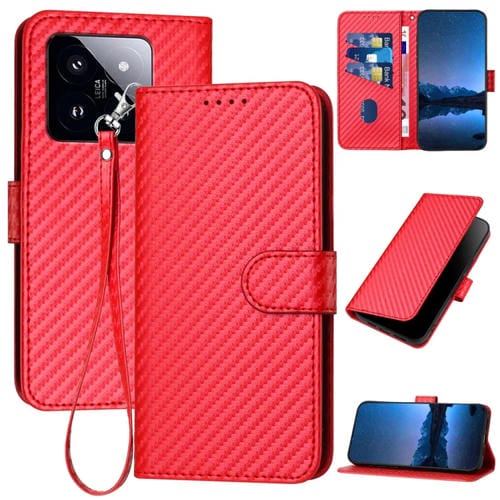 Para Xiaomi 14 Pro Yx0070 Funda De Cuero Con Hebilla De Fibra De Carbono Y Cordón (Rojo)