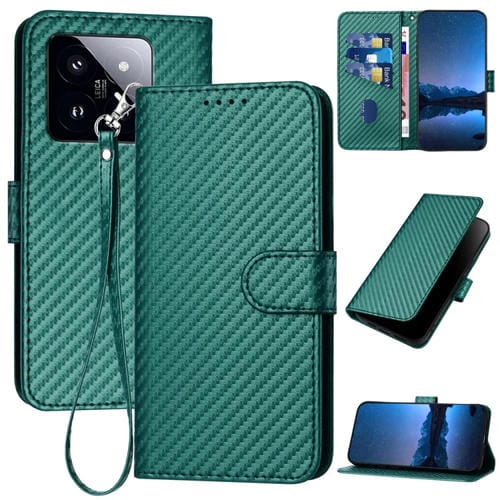 Para Xiaomi 14 Pro Yx0070 Funda De Cuero Con Hebilla De Fibra De Carbono Y Cordón (Verde Oscuro)