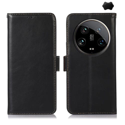 Para Xiaomi 14 Ultra Magnetic Crazy Horse Texture Funda Para Teléfono Rfid De Cuero Genuino (Negro)