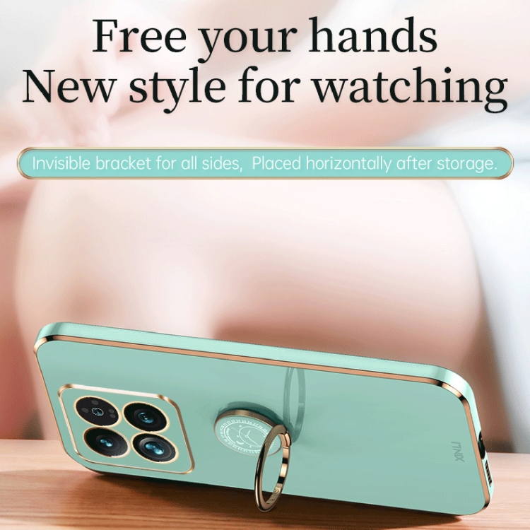 Para Xiaomi 14 Xinli Estuche Para Teléfono De Tpu Electrochapado Con Borde Recto 6D Y Soporte Para Anillo (Púrpura Cereza)