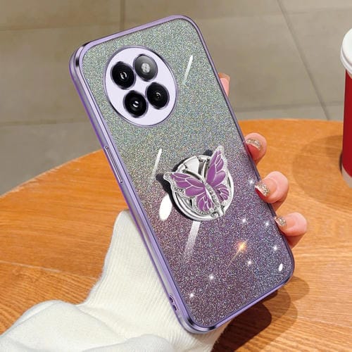 Para Xiaomi Civi 4 Pro Funda para Teléfono de TPU con Soporte de Mariposa con Brillo Degradado Plateado (Púrpura)