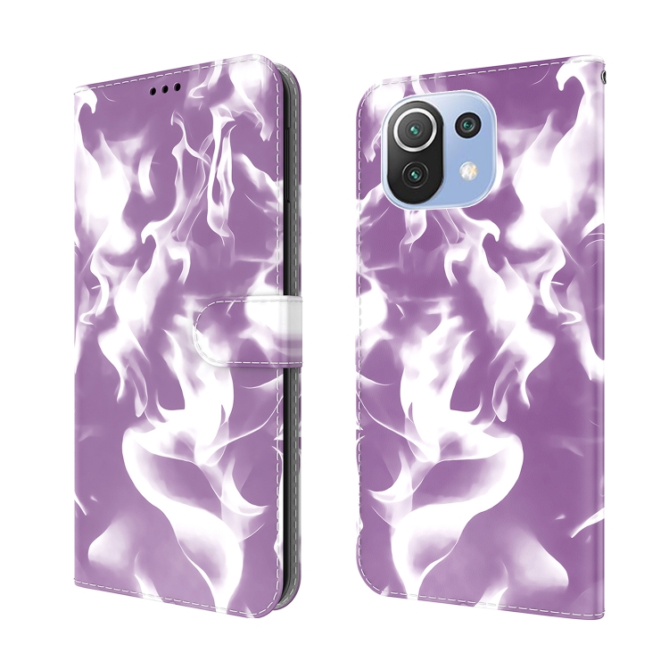 Para Xiaomi Mi 11 Lite Nube Nube Pattern Horizontal Flip Funda de Cuero con Soporte y Ranura para Tarjeta y Billetera (Púrpura)
