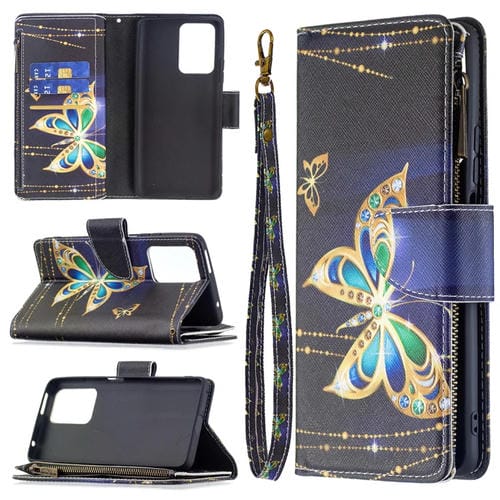 Para Xiaomi Mi 11T Patrón de Dibujo de Color Cremallera con Cremallera Horizontal Flip Funda con Soporte y Ranuras para Tarjetas y Billetera (Mariposa Grande)