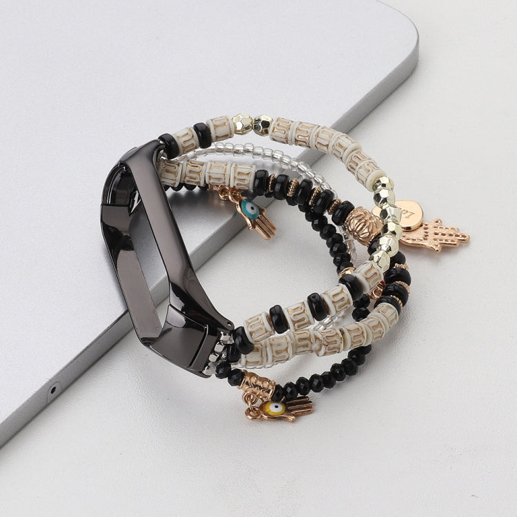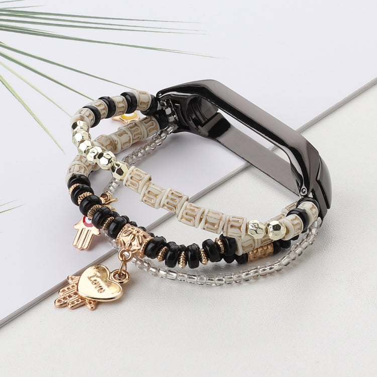 Para Xiaomi Mi Band 3 y 4 Mori Style Beade Bracelet Watch Band (Black)