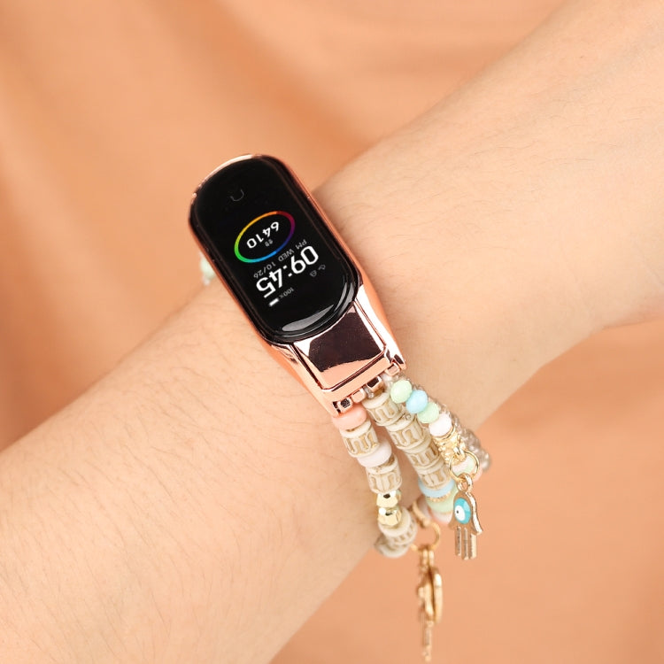 Para Xiaomi Mi Band 5 y 6 Mori Style Beade Bracelet Band (rosa)