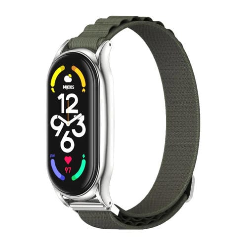 Banda de Reloj para Xiaomi Mi Band 7/7 Nfc Mijobs Plus Transpirable de Nylon (Verde Militar Plateado)