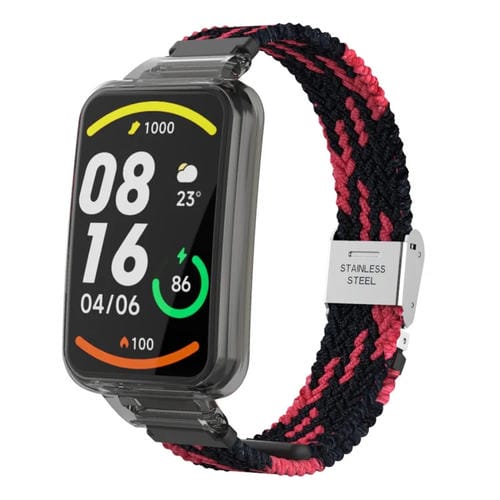 Correa de Reloj para Xiaomi Mi Band 7 Pro Integrada con Hebilla de Nailon Trenzado (Negro Rojo)