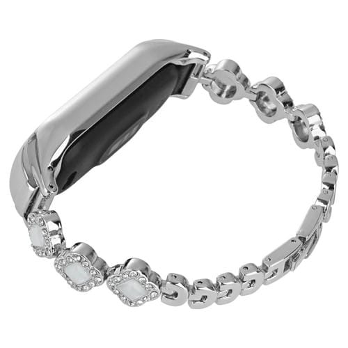 Correa de Reloj Metal para Xiaomi Mi Band 8 con Diamantes y Trébol (Plateado)