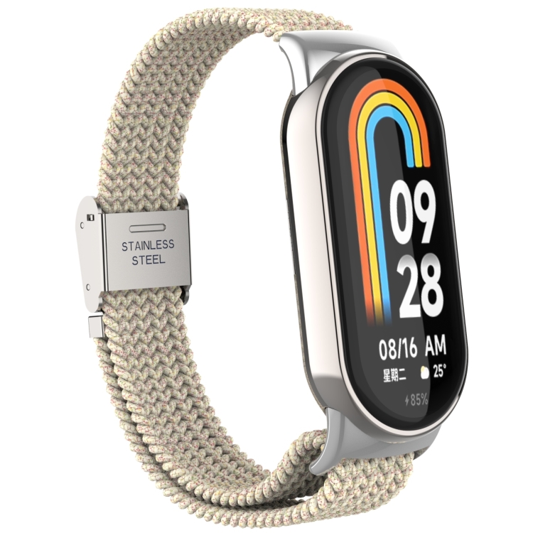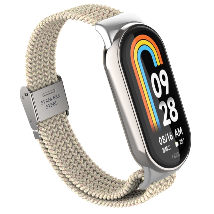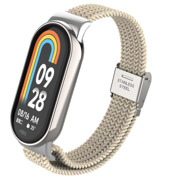 Correa para Xiaomi Mi Band 8 + Metal Head con Hebilla de Acero Trenzado de Nailon Ajustable (Starlight)