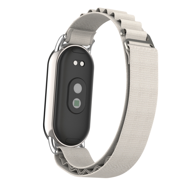 Correa para Xiaomi Mi Band 8 Metal Plug Loop Nylon (Plata y Starlight)