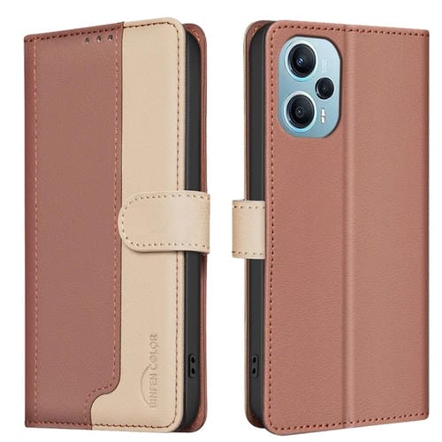 Para Xiaomi Poco F5 5G Funda de Teléfono de Cuero Antirrobo Rfid a Juego de Colores (Marrón)