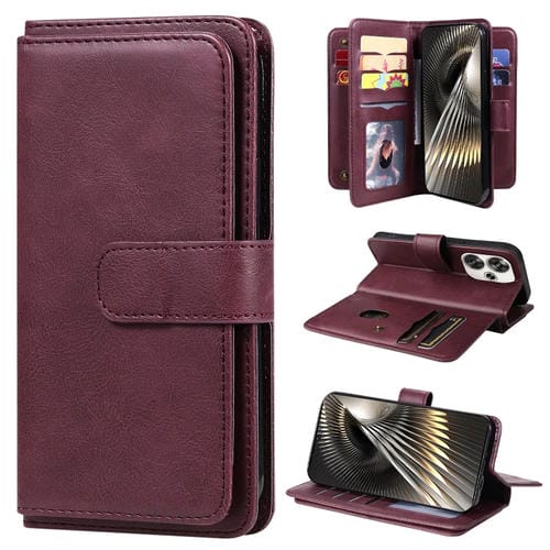 Para Xiaomi Poco F6 Cartera Multifunción 10 Ranuras para Tarjetas Funda de Cuero para Teléfono (Clarete)