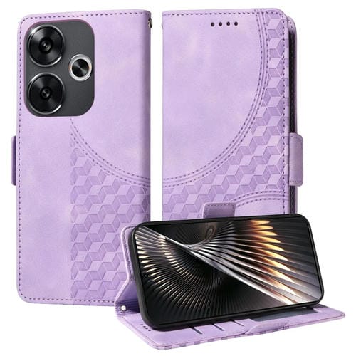 Para Xiaomi Poco F6 Funda para Teléfono de Cuero Estrellado con Rombos En Relieve (Púrpura)