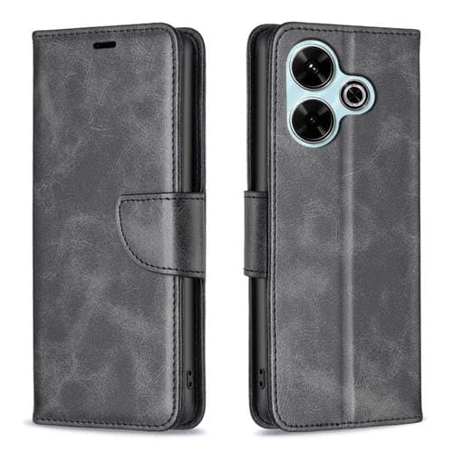 Para Xiaomi Poco M6 4G / Redmi 13 4G Funda para Teléfono de Cuero con Tapa de Color Puro con Textura de Piel de Cordero (Negro)