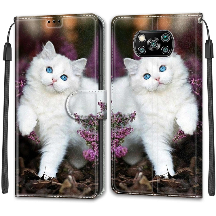 Para Xiaomi Poco X3 Nfc Tenso de Color Dibujo de Color Magnético Cierre Magnético Flip Pu Funda de Cuero con Soporte y Ranuras para Tarjetas (C08 Flor Bush Big White Cat)