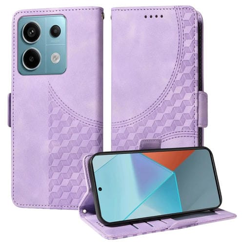 Para Xiaomi Poco X6 Funda de Teléfono de Cuero Estrellado con Rombos En Relieve (Púrpura)