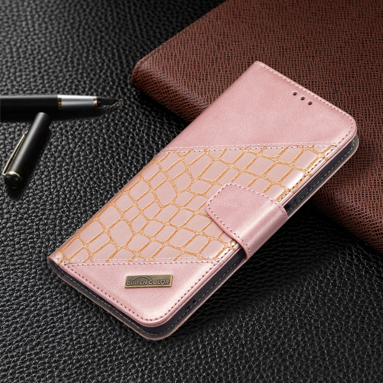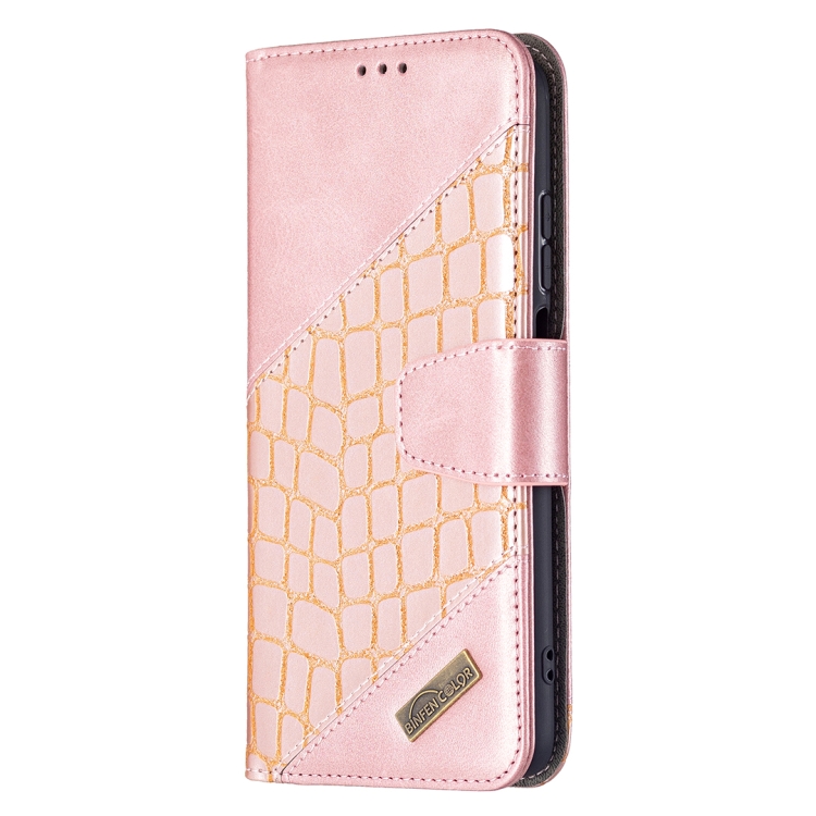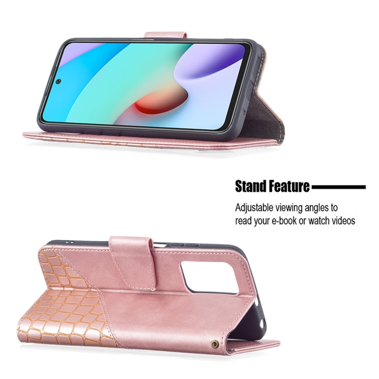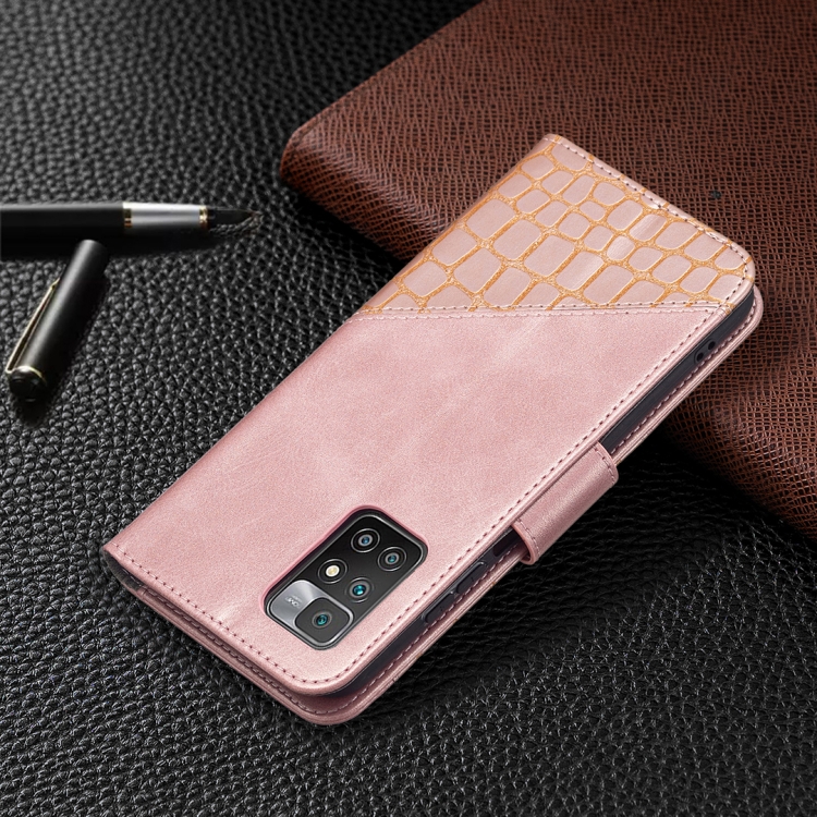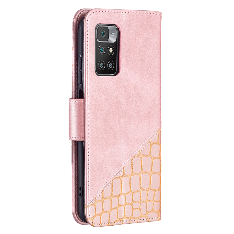 Para Xiaomi Redmi 10 Matching Color Cocodrilo Textura Horizontal Flip Pu Funda de Cuero con Billetera y Soporte y Ranuras de Tarjetas (Oro Rosa)