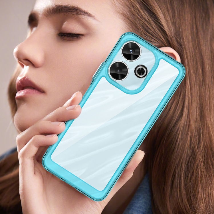 Para Xiaomi Redmi 13 4G Caja de Teléfono Híbrida Acrílica de TPU Serie Colorida (Azul Transparente)