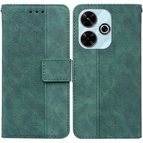 Para Xiaomi Redmi 13 4G Funda de Teléfono de Cuero con Relieve Geométrico (Verde)