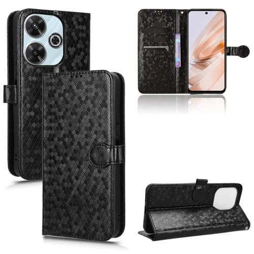 Para Xiaomi Redmi 13 4G / Note 13R 5G Funda para Teléfono de Cuero con Textura de Punto de Panal (Negro)