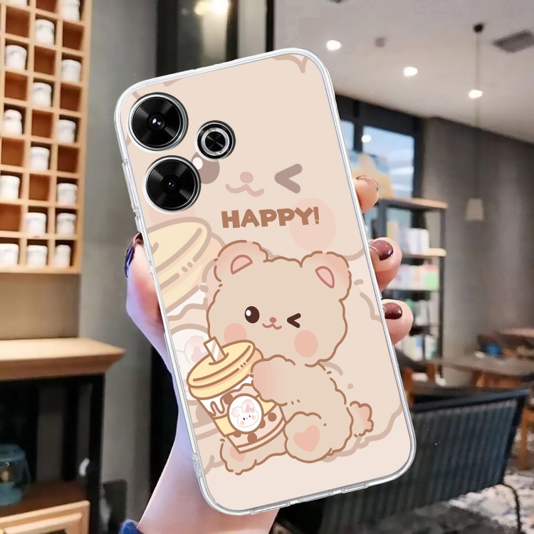 Para Xiaomi Redmi 13 4G Patrón de Dibujo Coloreado Funda de Teléfono TPU Transparente (Oso)