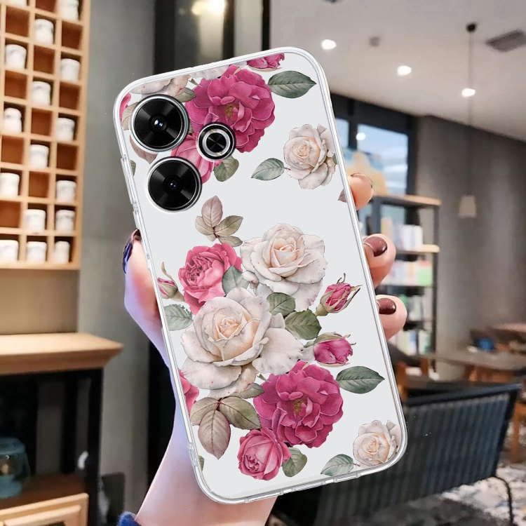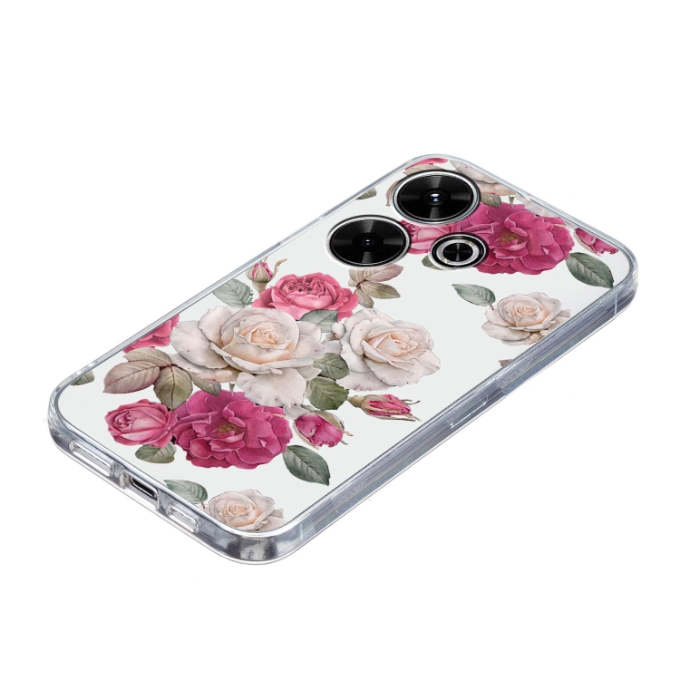 Para Xiaomi Redmi 13 4G Patrón de Dibujo Coloreado Funda de Teléfono TPU Transparente (Peonía)